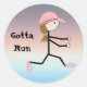 Um design bonitinho com uma garota de chapéu cor-de-rosa e cantos rosa. Um fundo macio sombreado em pinks e blues. Um ditado divertido "Tenho que correr" pode ser mudado, se assim o desejar.