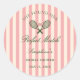 Celebre o amor e o estilo com estes rótulos de Chás de Panela de Perfect Match Tennis, projetados com listras suaves em rosa e sotaques verdes. Este design elegante e moderno combina uma estética preppy de velha fortuna com um chá de panela temático de esportes chiques, tornando-o perfeito para uma celebração inspirada em um clube social de tênis ou do interior. Com a frase divertida “ela encontrou sua combinação perfeita”, estes adesivos listrados são ideais para noivas que amam detalhes polidos, paletas de cores clássicas e um visual atemporal e fresco.