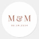 Add a warm, personalized touch to your wedding details with this Terracotta & White Monogram Typography Wedding Classic Round Sticker. Featuring a clean white background with elegant terracotta-colored typography, it beautifully highlights your custom monogram and special date with a soft, earthy charm. Perfect for sealing envelopes, decorating favors, or enhancing your wedding stationery, this sticker brings a timeless and sophisticated finish to your celebration.
