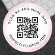 Rótulo de código QR redondo elegante com texto circular e uma rosa claro impressa na borda gradiente.