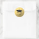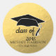 Este é um adesivo de graduação em ouro com texto preto e conselho de argamassa.Um adesivo elegante para usar como selo de envelope em anúncios de graduação e festas de formatura. Este é um modelo fácil de personalizar.