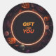 Adicione um toque assustador aos presentes de Halloween com este adesivo clássico redondo "Gift For You". Apresentando letras ousadas e elementos estranhos do Dia das Bruxas como morcegos, abóboras e teias de sopa, este adesivo é perfeito para selar favoritos para festas, bolsas de truque ou de tratamento ou caixas de presentes assustadoras. Façam as vossas guloseimas com esta design festiva e divertida!