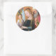 This detail from an early 15th-century panel painting by an anonymous French artist focuses on the faces of three figures: an angel, the Blessed Virgin Mary (BVM), and St. Joseph. The angel, with multi-colored, upright wings and dressed in white, smiles as he gently leads a gravid—that is, very pregnant—Virgin Mary to the place where she will deliver her babe, fulfilling the first part of God’s plan for the salvation of mankind. Mary, dressed in a dark blue robe and matching mantle, her head humbly bowed, meekly follows the angel’s lead. She is serenely calm and introspective. And, finally, a fretful, elderly St. Joseph watches from behind an elaborately woven, waist-high tapestry hung as a privacy curtain (not visible here) as his young wife is led away to give birth in a different account of the Nativity from the apocryphal Gospel of James. + Image Credit: Detail of The Expectant Madonna with Saint Joseph, by an anonymous 15th-century French painter, c. 1425/1450, tempera on a European walnut panel. Dimensions (image): 27 3/4 × 13 3/4 in. (70.5 × 35 cm.); (with integral frame [not pictured here]): 32 11/16 × 19 × 2 3/4 in. (83 × 48.3 × 7 cm.). The Samuel H. Kress Collection, The National Gallery of Art, Washington DC, Accession Number: 1952.5.32. This image is in the public domain.