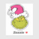 This fantastic, bold illustration is a close-up portrait of the Grinch in full mischievous mode! He has his signature sly grin and bright yellow eyes, but his look is updated with a large, fluffy Santa hat in a fun, unexpected pink/fuchsia color instead of the traditional red. This graphic is perfect for anyone who loves the holidays but embraces a non-traditional, delightfully grumpy, and colorful style!