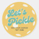 Adicione um toque especial à sua festa ou evento de pickleball com esses adesivos apresentando uma bola de pickleball laranja, "Vamos Pickle" em uma fonte azul turquesa divertida e seu texto personalizado. Adicione um nome, nome do clube de pickleball, frase engraçada, etc. É o complemento perfeito para qualquer festa, torneio ou evento de pickleball.