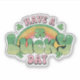 Vinheta com uma Rua. Imagem temática do Dia de Patrick. Um design de estilo retrô grunge que diz: Tenha um dia de sorte. Com um arco-íris colorido atrás. Palavras escritas em uma víbora retrora gorda arredondada. Cor rosa e verde.