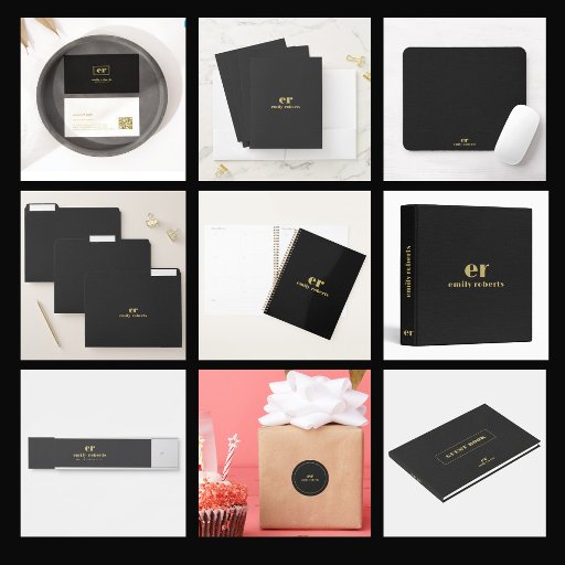 Adesivo Tipografia Dourada Mínima de Linen Preto Monograma