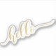 A mão de ouro moderna escreveu "olá" com o tema da tipografia manuscrita.