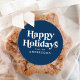 Adesivos simples de Natal com a expressão "Felizes Festas" exibida em letras brancas em estilo retrô sobre um fundo azul-marinho. Personalize os adesivos de Natal azul-escuros com o seu nome ou texto personalizado. Os adesivos de Natal elegantes são perfeitos para usar como selos de envelope, embrulho de presentes, lembrancinhas de festa e muito mais! Criados para combinar com a nossa coleção de Natal Tipografia Retro.