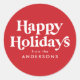 Adesivos simples de Natal com a expressão "Felizes Festas" exibida em letras brancas em estilo retrô sobre um fundo vermelho. Personalize os adesivos de Natal vermelhos com o seu nome ou texto personalizado. Os adesivos de Natal elegantes são perfeitos para usar como selos de envelope, embrulho de presentes, lembrancinhas de festa e muito mais! Feitos para combinar com a nossa coleção de Natal de Tipografia Retro.