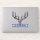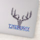 Show your support for TJTGRAPHIX with this unique sticker featuring one of my original hand drawn designs. This sticker shows a creative take on a buck skull formed with an arrowhead and feathers for antlers. At the bottom is my brand name TJTGRAPHIX in bold neon color, making it the perfect way to represent your love for the nature inspired designs featured in my stores. Add it to your gear, laptop, or sketchbook to carry a piece of my brand wherever you go!