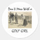 Saia do caminho dela, ela está dirigindo pelo curso em estilo retrô. Excelente Golf Girl e Don't Mess With a Golf Girl slogan para todas aquelas mulheres de golfe e seus amigos que gostam de olhar na moda no curso, no clube ou em casa. Faz um presente de excelente para o fã ou jogador de golfe das mulheres na sua vida, de iniciantes a profissionais. Vem na versão somente imagem, também, que é excelente para cara.