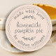 Adesivo de torta de abóbora de produtos assados caseiros rústicos e modernos com o texto feito com amor, torta de abóbora caseira e seu nome em letra moderna em um fundo de poeira de pêssego. Basta adicionar o nome da sua (empresa) e o nome do produto ao rótulo. Exclusivamente projetado para você pelo Happy Dolphin Studio. Se precisar de ajuda ou produtos correspondentes, entre em contato conosco em happydolphinstudio@outlook.com.