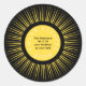 Yellow sun with black overlay: Total Solar Eclipse your name, date, and place text personalized round sticker template.