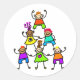 Um desenho animado bonito de um grupo de figurinhas bonitinhas meninos e meninas em pé sobre os ombros uns dos outros para formar uma torre triangular de apoio e unidade. Personalize e escolha facilmente a sua própria cor de fundo ou adicione texto. Imagem disponível em vários presentes e produtos.