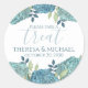 Um simples obrigado que você favorece o obrigado que você rotula modelo. este design apresenta um obrigado de casamento que você prefere, um jardim floral azul de flores hydrangea, etiquetas de presentes de boas-vindas bolsas, guião de tipografia de caligrafia de elogio, drangeas elegantes de cor aquática botânica, um clássico botânico romântico de verão primavera clássico simples e verde branco-azul, com uma menção especial, etiquetas de casamento florais de cor-de-água