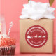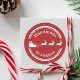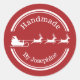 Com a ajuda deste adesivo você pode deixar as pessoas saberem que os seus biscoitos caseiros, guloseimas artesanais ou presentes foram feitos pessoalmente por você. O design apresenta a silhueta branca de um Papai Noel num trenó com algumas renas. O design é emoldurado por bordas superior e inferior. Há também duas áreas de texto personalizáveis. A paleta de cores é vermelha e branca.