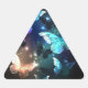 Fabulosa, brilhante, azul e amarela, borboleta noturna sobre fundo escuro.