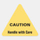 Amarelo brilhante com a palavra precaução e manuseie com cuidado. O texto pode ser alterado ou excluído