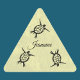 Gravura original em madeira de tartaruga marinha em adesivo triangular amarelo.