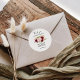 Esse obrigado vermelho tropical e romântico que você prefere adesivos redondos clássicos é perfeito para um casamento simples. O design de marsala artístico bordo apresenta rosas de aquarela, verdes, cor-de-rosa, burgundy e blush, combinados com verde, bem arrumados num buquê de flores gracioso e radiante.