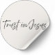 Minimal Christian sticker with the message “Trust in Jesus” — a timeless faith reminder for everyday life, prayer and devotion.