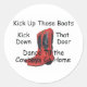 Levantem Essas Botas, Deitem Aquela Porta, Dancem Até Os Cowboys Irem Para Casa. Receba o slogan para cada cara ou garota que vestiu algumas botas country, ouviu música country, tomou uma bebida num bar country, ou dançou uma dança de linha. Por todas aquelas vaqueiras e vaqueiros lá fora.