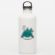 Um engraçado tubarão branco e azul de desenho animado com dentes pontiagudos grandes e pequenos ovais pretos para os olhos e bolhas sopradoras.