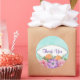 Bonito obrigado seu adesivo. Um belo buquê de flores de aquarela, formado por peônias cor-de-rosa, anêmonas roxas e tulipas laranja cercadas por folhas verdes. Um quadro oval de rico com uma borda dourada diz que obrigado você ou você pode personalizá-lo para ler o que quiser. Colocado sobre um fundo de aquarela verde de menta macia.
