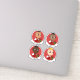 Conjunto de quatro adesivos de vinilo cortados com ilustrações de meninos ou meninas felizes e bonitinhos sorrindo, que estão vestidos com roupas de Natal e estão segurando um presente, quatro bebês diversos - caucasiano, negro/africano, asiático ou hispânico, em fundo vermelho; com um modelo de texto personalizável para seu nome ou mensagem Uma versão recentemente editada para 2022!