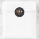 Etiquetas de chá de fraldas com o tema do Dia das Bruxas bonitinhas, com a frase "Um pequeno boo está quase a nascer" em laranja, amarelo e roxo, com fantasmas brancos sobre fundo preto. Estrelas coloridas e pontos circundam a design. Personalize os adesivos do chá de fraldas de Halloween com o nome da futura mãe. Os adesivos são perfeitos para selar chás de fraldas a favor de bolsas, envelopes, etc.