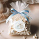 Um adesivo redondo de chuveiro de bebê elegante, projetado com abóboras em aquarela azul e branca. A maioria das letras é editável - clique no botão "Personalizar Mais" para editar. Itens correspondentes em nosso design de festa Cava