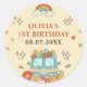 Um adesivo circular clássico com primeiro aniversario retrógrado retrógrado do arco-íris