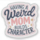 Celebre sua mãe esquisita com este adesivo divertido e relacionado! Apresentando a frase "Ter uma Mãe Estranha constrói Personagem" em um design lúdico, este adesivo é um tributo iluminado a todas as mães que abraçam suas personalidades únicas e tornam a vida mais interessante. Feito com vinil durável, esse adesivo é perfeito para laptop, garrafas de água, revistas e muito mais.