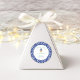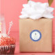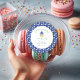 Este é um adesivo de chá de fraldas personalizável com um tema charmoso de mirtilo. A design apresenta uma borda azul adornada com flores brancas tipo margarida, moldando um quadrado branco central. Dentro na praça, há uma ilustração de mirtilos com folhas verdes, acrescentando um toque lúdico e doce. O texto, escrito em uma mistura de fontes cursivas e impressão, diz: "Um menino doce de baga está a caminho!" Abaixo, em uma fonte complementar, ele exibe o nome da honra e a data do evento. O adesivo tem uma estética fresca, branca e divertida, perfeita para um chá de fraldas de mirtilo ou fruta. É personalizável, permitindo que o nome e a data sejam personalizados para ajustado de qualquer celebração.