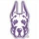 Este design é um close-up da Universidade em Albany Great Dane mascot head. A ilustração usa contornos roxos ousados com sombreamento detalhado em cinzas para a face do Grande Dane, destacando suas características angulares. Os olhos são afiados, e a expressão transmite alerta e força. Acentos de ouro aparecem em ambos os lados da mandíbula do cão, acrescentando um toque de calor à aparência feroz do outro jeito. Os ouvidos estão erguidos e pontiagudos, reforçando o sentido de prontidão e autoridade do logotipo. O design é mínimo, mas poderoso, ideal para a identidade atlética da UAlbany.