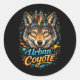 A striking coyote portrait fused with glowing city lights captures the spirit of wild resilience in a modern urban world.