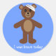 Os adesivos de recompensa azuis para crianças com ursinho de desenho animado fofo com uma bandagem na cabeça e as palavras "Eu fui corajoso hoje" A cor de fundo e o texto podem ser personalizados clicando no botão "Personalizar" - um monte de cores e fontes a serem escolhidas.