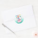 Obrigado, palitos com um urso de aquarela fofo vestindo uma coroa ouro. Este bicho branco é pintado a rosa e verde e decorado com corações em seu peito. Um banner colorido de bunting se estende pela parte superior. O fundo é um gradiente verde-aqua ombre.