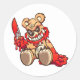 Adesivo urso de pelúcia mau coberto de sangue e segurando