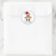 Um Urso de Teddy Bonito com o Pau Clássico de Natal do Criança de Santa Hat. Um ursinho bonito com um chapéu de Papai Noel vermelho e fundo azul com flocos de neve brancos. Personalize o adesivo com seu nome.