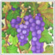 Vinheta numa videira rica em detalhes com uvas roxas profundas e folhas verdes
