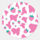 Cowprint rosa-claro pontilhado por toda parte com morangos para quem ama vacas