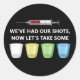 Tivemos nossa vacina, então o vamos comemora o começo do fim do 19 de Covd! Vacinação postada, é hora de nos encontrarmos responsavelmente com outros adultos vacinados e nos recompensar por um longo ano pandêmico em quarentena. Um adesivo legal para trabalhadores médicos essenciais que receberam o tiro do coronavírus. Tivemos nossas fotos, agora o vamos leva algumas.