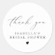 Este adesivo de agradecimento para chá de noiva apresenta uma fonte de caligrafia elegante e design minimalista clássico. Edite facilmente a palavra sem serifa para atender às necessidades do seu evento. Todas as cores são editáveis no editor completo.