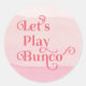 Design é perfeito para os divertidos jogadores Bunco. Diferentes tons de fundo cor d'água rosa. Acentuado por uma fonte moderna que diz: "Toque Bunco de Vamos". Este adesivo divertido pode ser vestido no seu próximo evento Bunco. Ou anexar aos seus convites do Bunco.