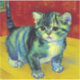 Vestido com um gato no estilo de Van Gogh! Este doce gatinho se posiciona adoravelmente num chão de madeira contra paredes vermelhas e uma janela. Um presente incrível para amantes de gatos e colecionadores de arte holandeses!