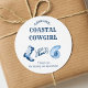 Prepare-se para celebrar a noiva a ser com a nossa festa de solteira típica da Cowgirl Costeira! O charme do oceano encontra o espírito do oeste selvagem com os motivos costeiros e ocidentais. Perfeito para um tema do Oceano de Praia Tropical ou para uma moça Ocidental na última rodeia do Rodeo. Quer ela seja uma Garota Costeira ou ame Víblias Costeiras Azuis, esta obrigado que você escolhe tem tudo. Apresentando Blue Western Yeehaw Boots and seashell motif, é ideal para qualquer Blue Aestic Fun Party. De Nova Orleans a Nashville, Miami a Charleston, e até mesmo Texas e Tennessee, este adesivo redondo clássico captura a essência da diversão e da aventura. Torná-la inesquecível com este adesivo único e vibrante!