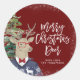 Feliz Velho de Natal! Um fundo vermelho festivo com um veado em um saltador de natal e luzes cintilantes em seu design de galhadas e uma dica de falso brilho para um brilho festivo. Edite ou exclua o texto de nomes conforme necessário. Convocações correspondentes no compro!
