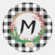 Fale seus convites de Natal ou Cartões de natal com obrigados de estilo para os adesivos de Buffalo preto e branco modernos com uma coroa de morango vermelha e sua inicial. © ArianeC Ilustrações — Todos os direitos reservados